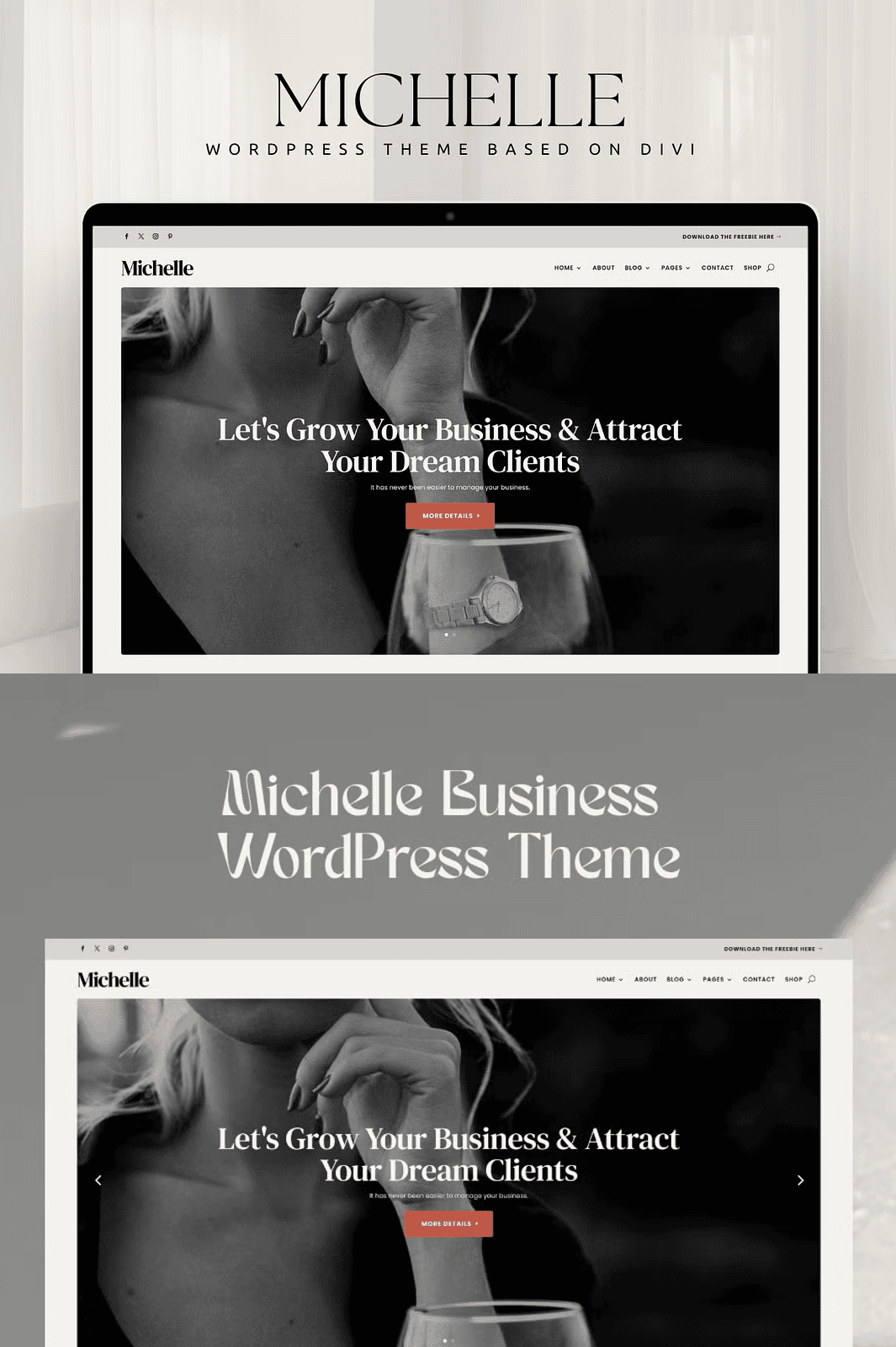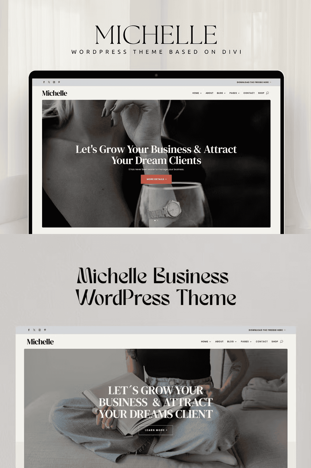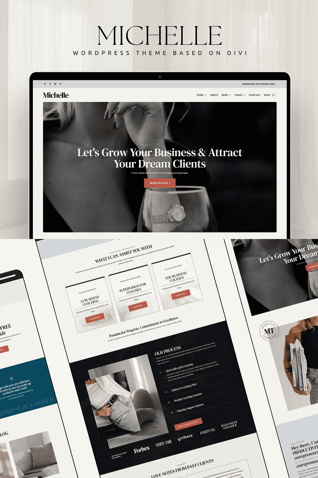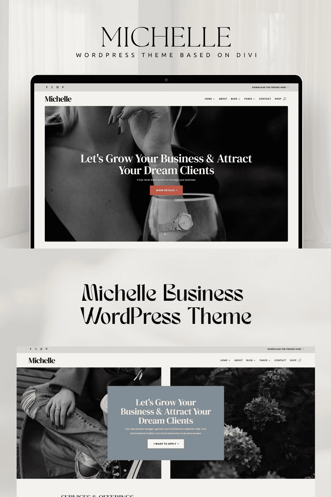 Michelle isn’t just a theme — it’s your strategic advantage in the digital world. Crafted for business owners, online coaches, podcasters, and creatives, Michelle delivers a sleek, modern design that combines elegance with high-performance functionality. Every element is engineered to help you attract more visitors, build trust, and transform leads into paying clients — all without writing a single line of code.