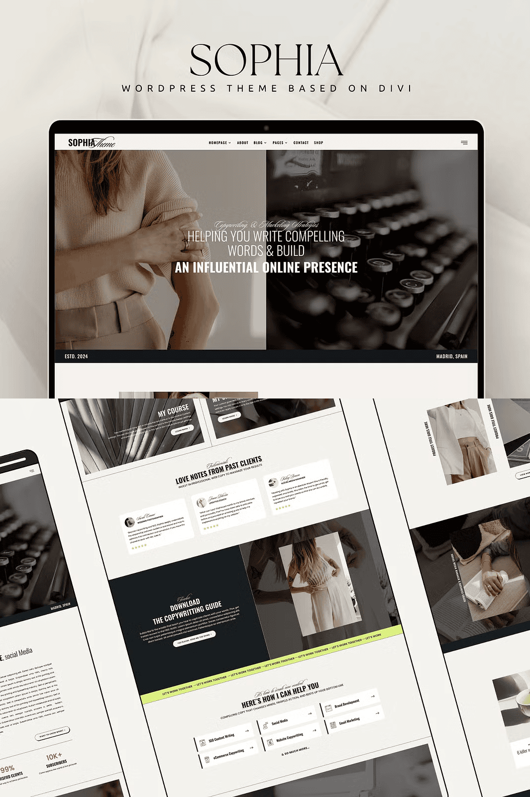 Stop wasting time building from scratch. The Sophia Divi Child Theme delivers a complete, professional website foundation built specifically for copywriters, digital marketers, and marketing consultants who are ready to attract high-value clients and monetize their expertise online. This high-converting template leverages proven sales psychology and modern design principles to transform visitors into leads and customers—without any coding required.