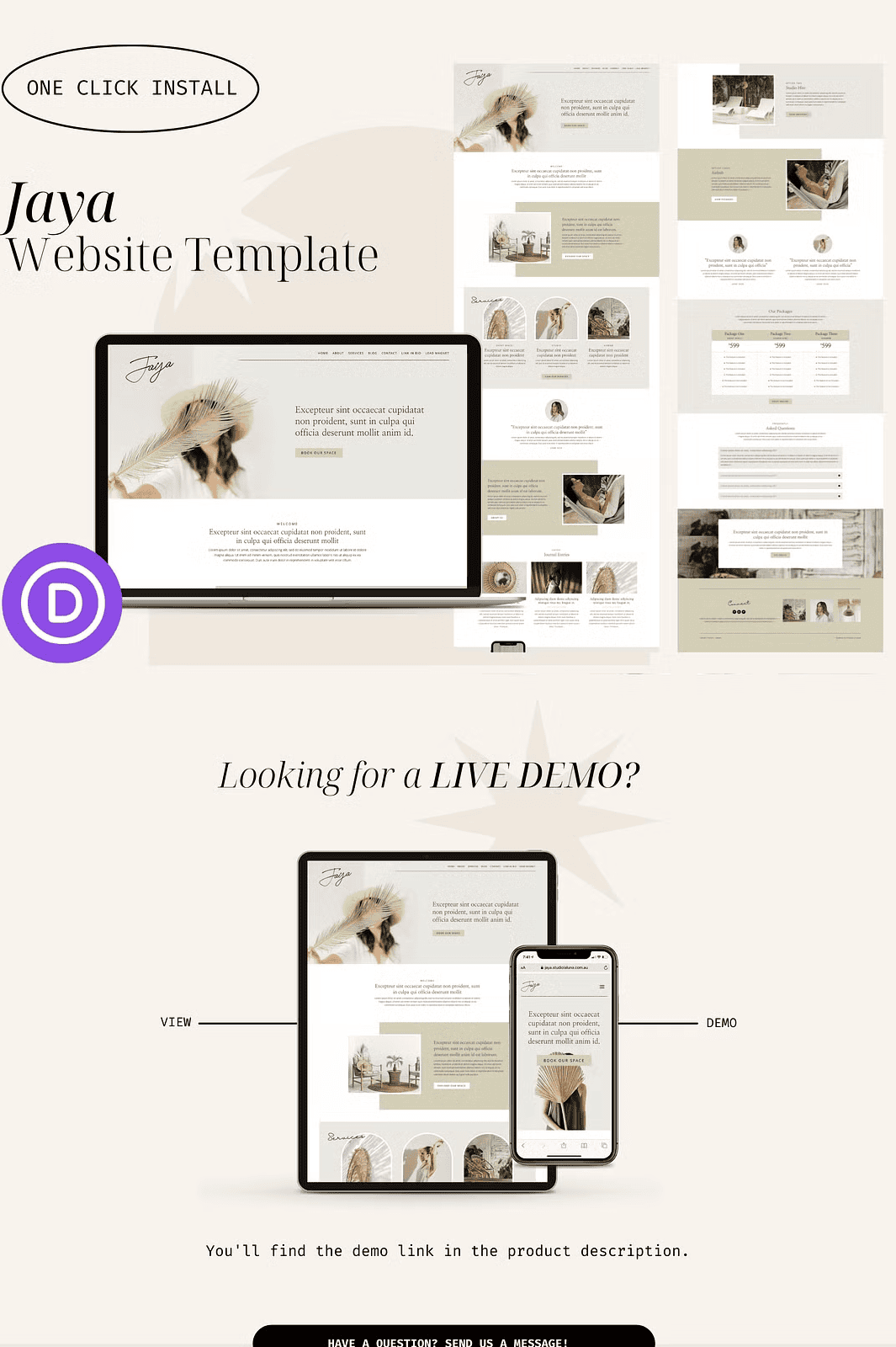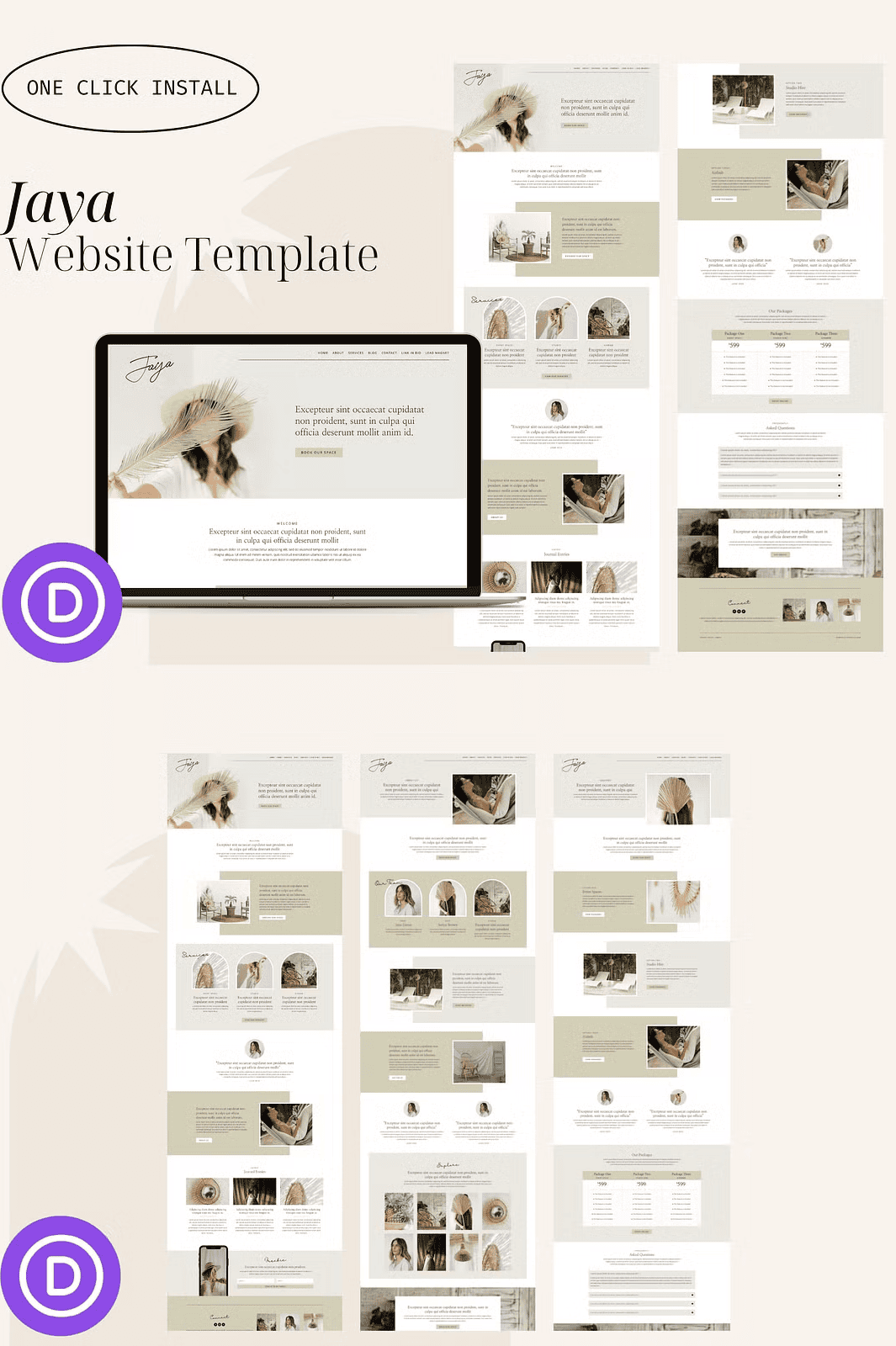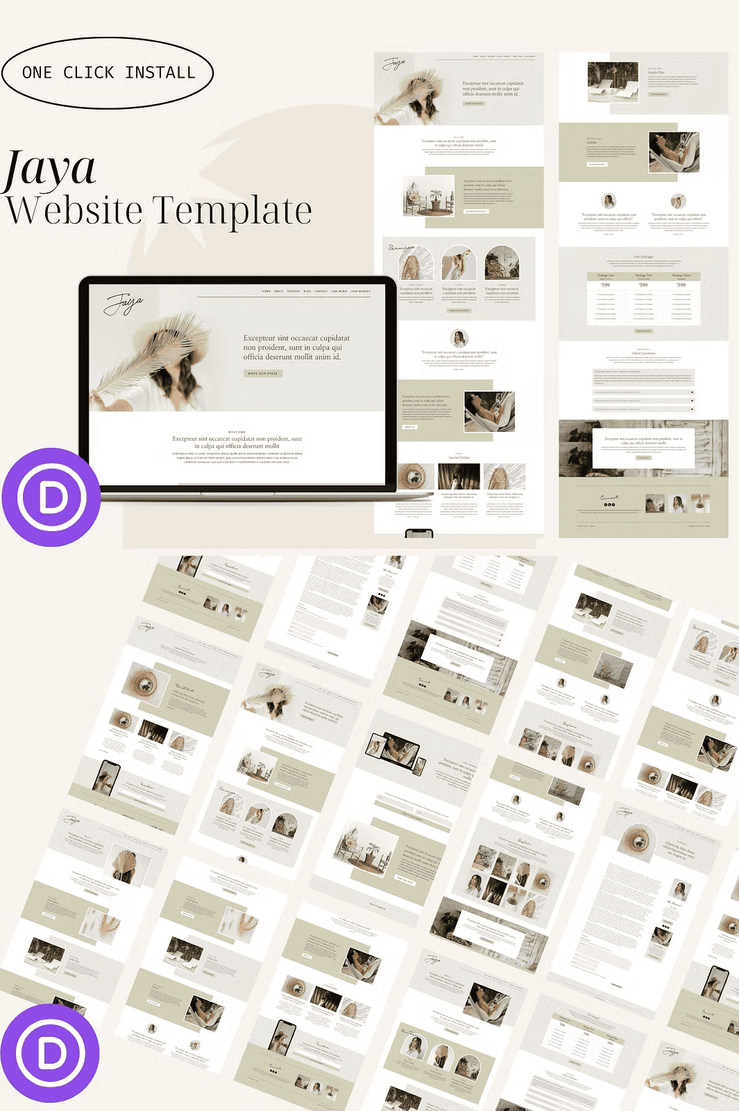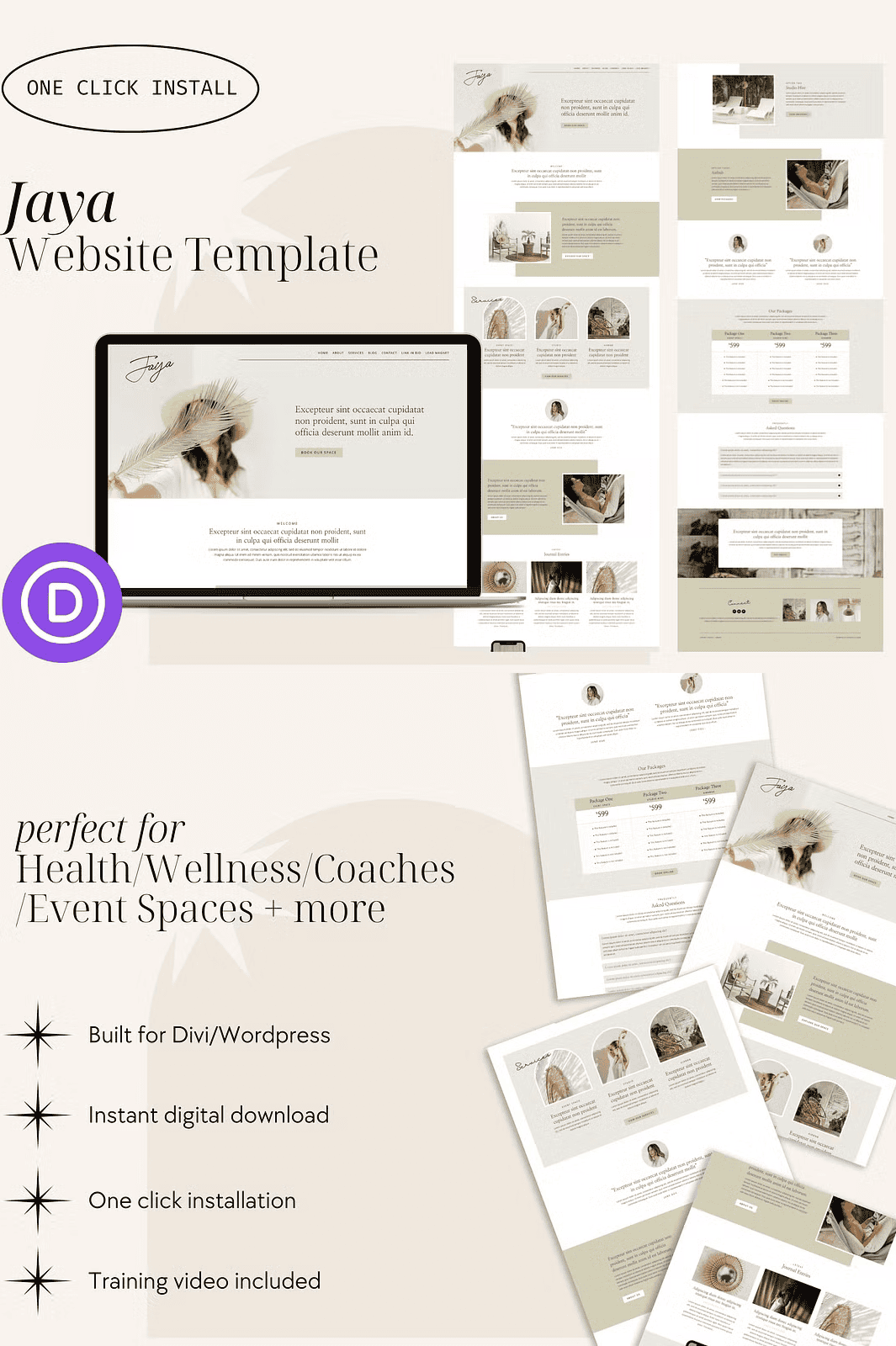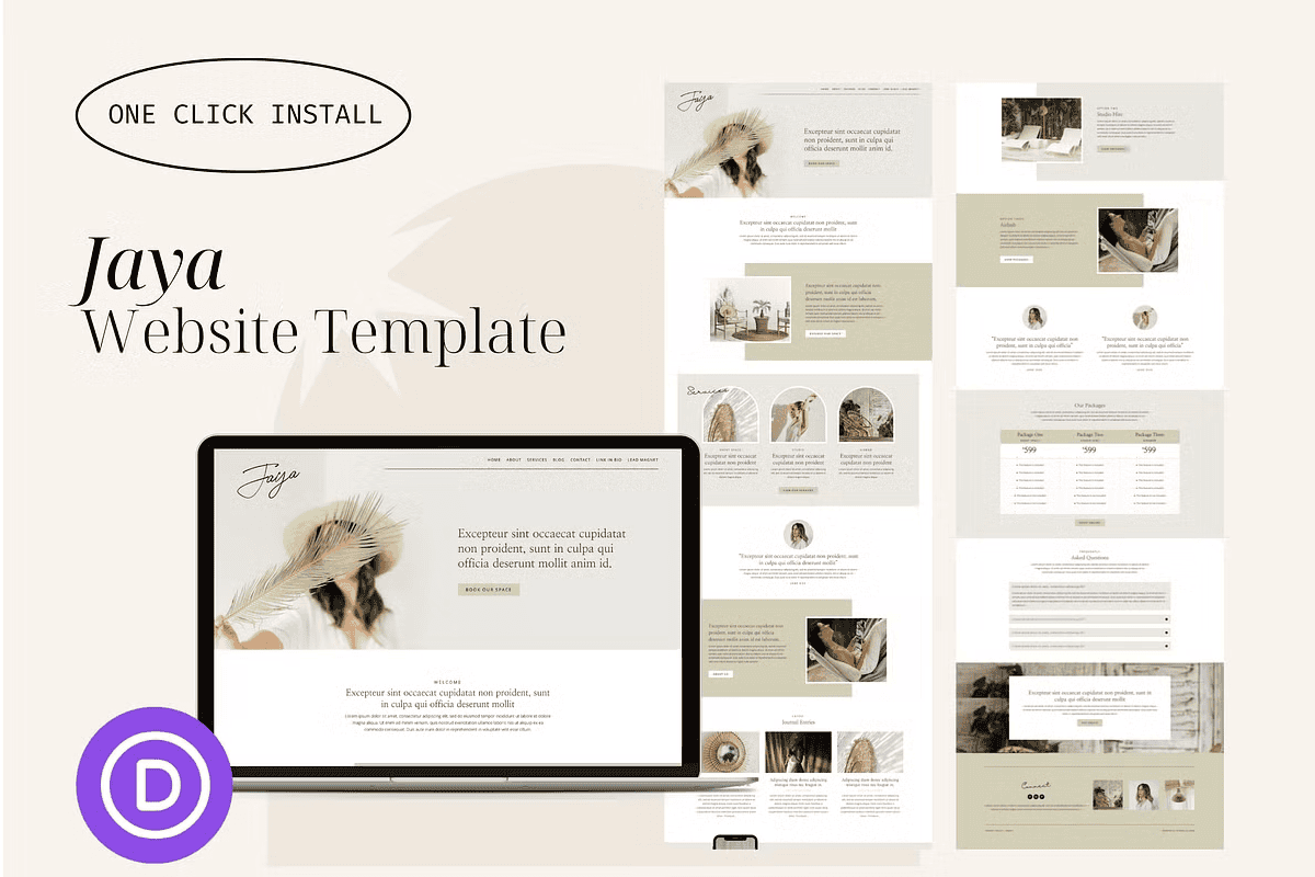 Unlock instant website creation with **Jaya**, a fully designed, ready-to-import WordPress template built for the **Divi Builder**. This minimalist, clean-layout design is crafted for wellness coaches, life mentors, Airbnb hosts, content creators, and small business owners who want to present their brand with elegance and purpose—without coding.