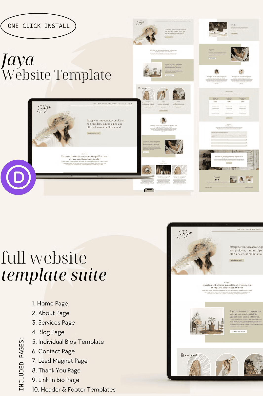 **Keywords**: Jaya Divi Template, Divi Website Template, Divi Builder Website, Wellness Website Template, Coaching Website, Airbnb Website Design, Lead Magnet Template, Digital Product Template, One-Click Import Template, Canva Template for WordPress, Free WordPress Theme for Coaches, WordPress Site for Content Creators