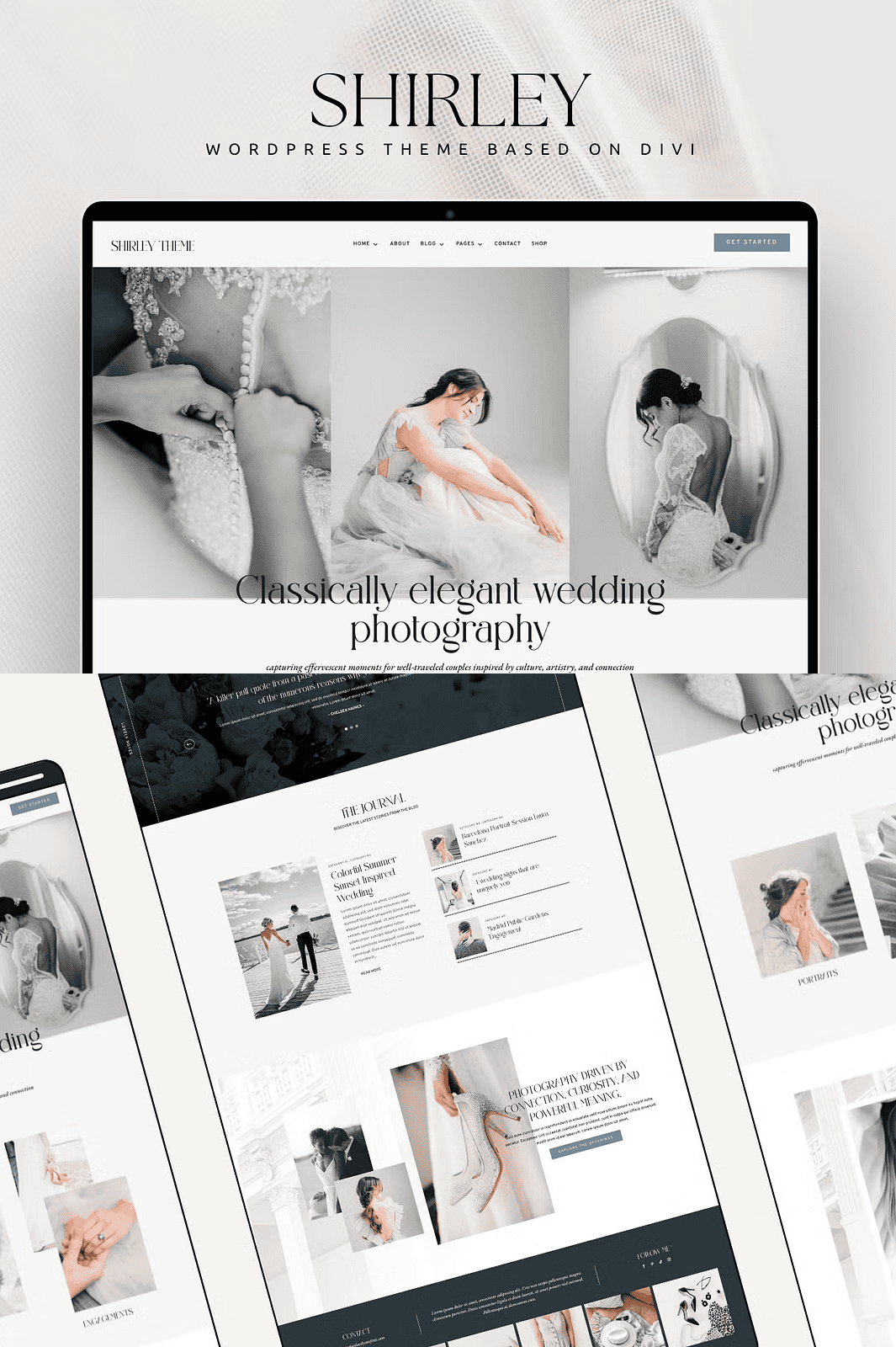 Shirley includes over 16 professional page layouts, fully optimized for visual storytelling and client conversion: