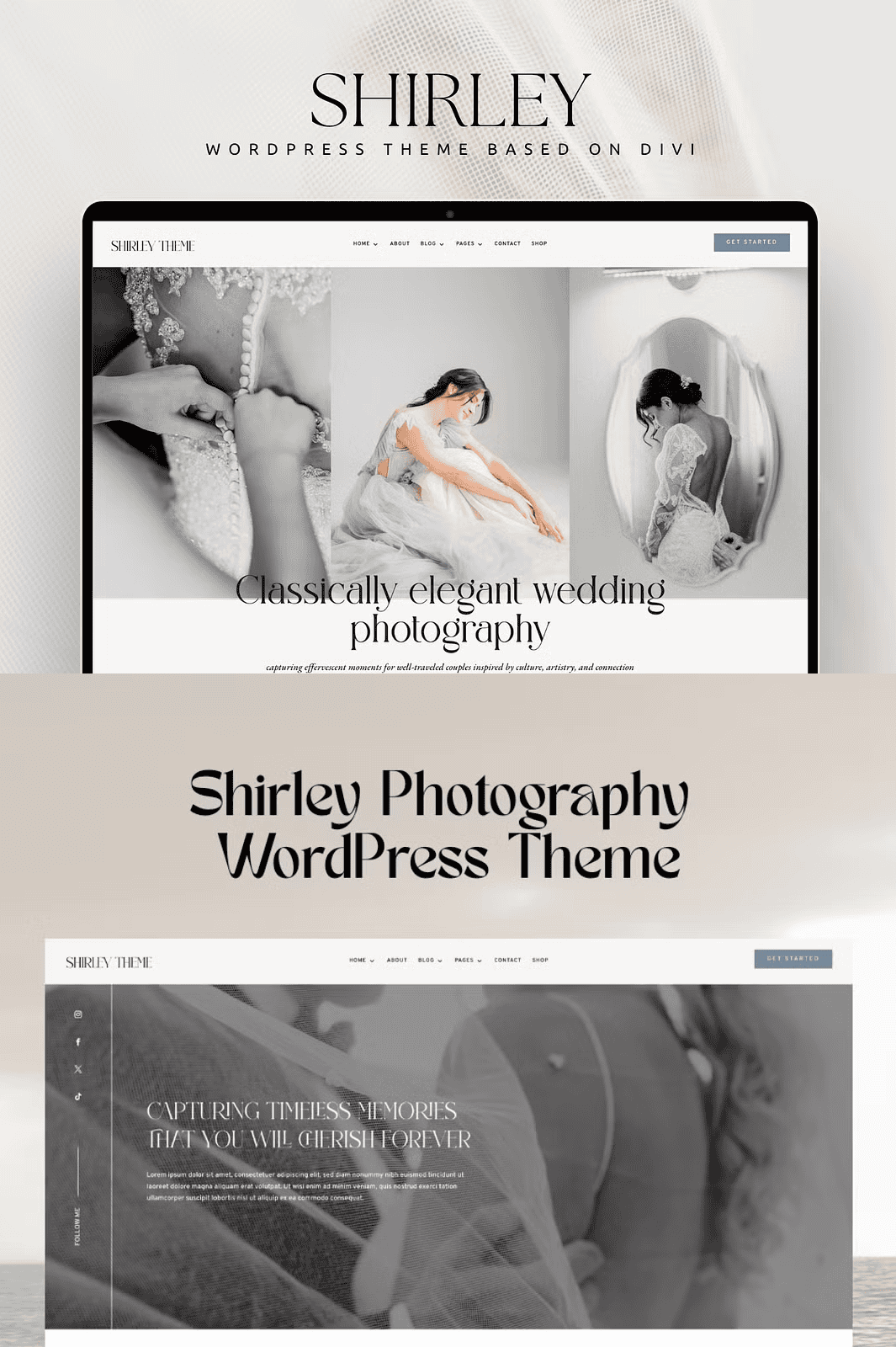 **Keywords**: Shirley Photography Theme, Divi Child Theme for Photographers, WordPress Photography Website, Elegant Divi Template, WooCommerce Photography Site, Photography Portfolio Template, Divi Visual Builder, One-Click Import Theme, Canva Instagram Kit for Photographers, Email Marketing WordPress Theme, Online Coach Website, Creative Business Theme